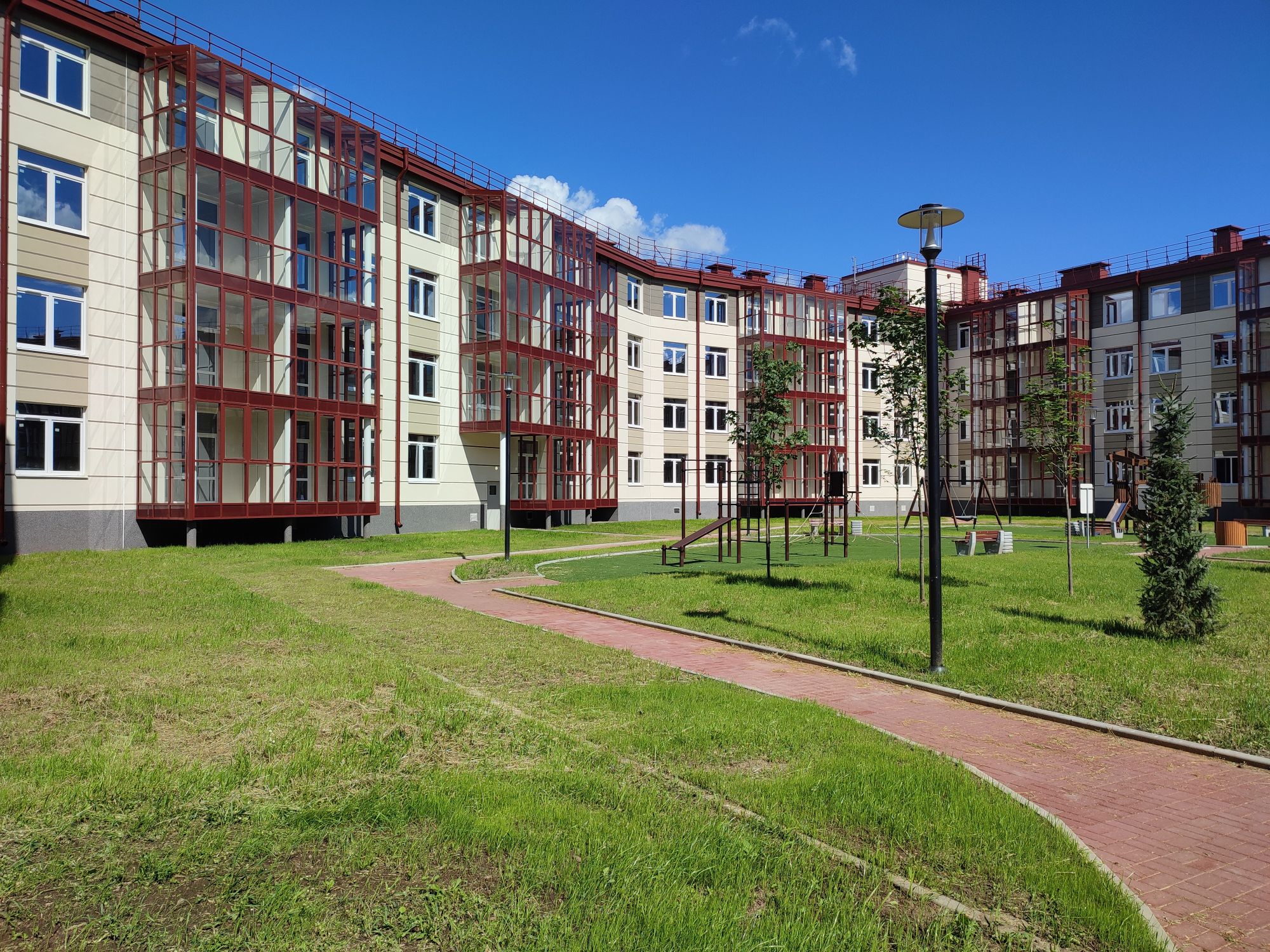 В Петербурге много зданий теплых, пастельных оттенков. Так повелось изначально. Считается, что цветовую гамму домов в строящейся столице определил Петр Первый. Идея заключалась в том, что в пасмурном, дождливом городе фасады должны радовать горожан. Для окрашивания применяли пигмент природного происхождения – охру, которая дает золотистые оттенки. Поэтому в Петербурге многие исторические здания песочного, светло-коричневого и бежевого цвета. Такой подход помогает сохранять оптимизм в любых погодных условиях. С 1966 года цветовая палитра города состояла из 40 образцов, а в 2020-м году обогатилась еще на 74 оттенка. Цвета дополнили по таким критериям, как насыщенность, светлота, яркость, тональность.Традиционные для Петербурга оттенки можно встретить в малоэтажных «Образцовых кварталах». Дома имеют узнаваемые фасады, окрашенные в тёплые цвета: золотисто-коричневые, зелёные, жёлтые, бежевые. Они соответствуют утверждённой петербургской палитре. В отличии от мелкой расстекловки, которая применялась раньше, новые дома украшает панорамное остекление. С ним фасады выглядят динамичнее и элегантнее.