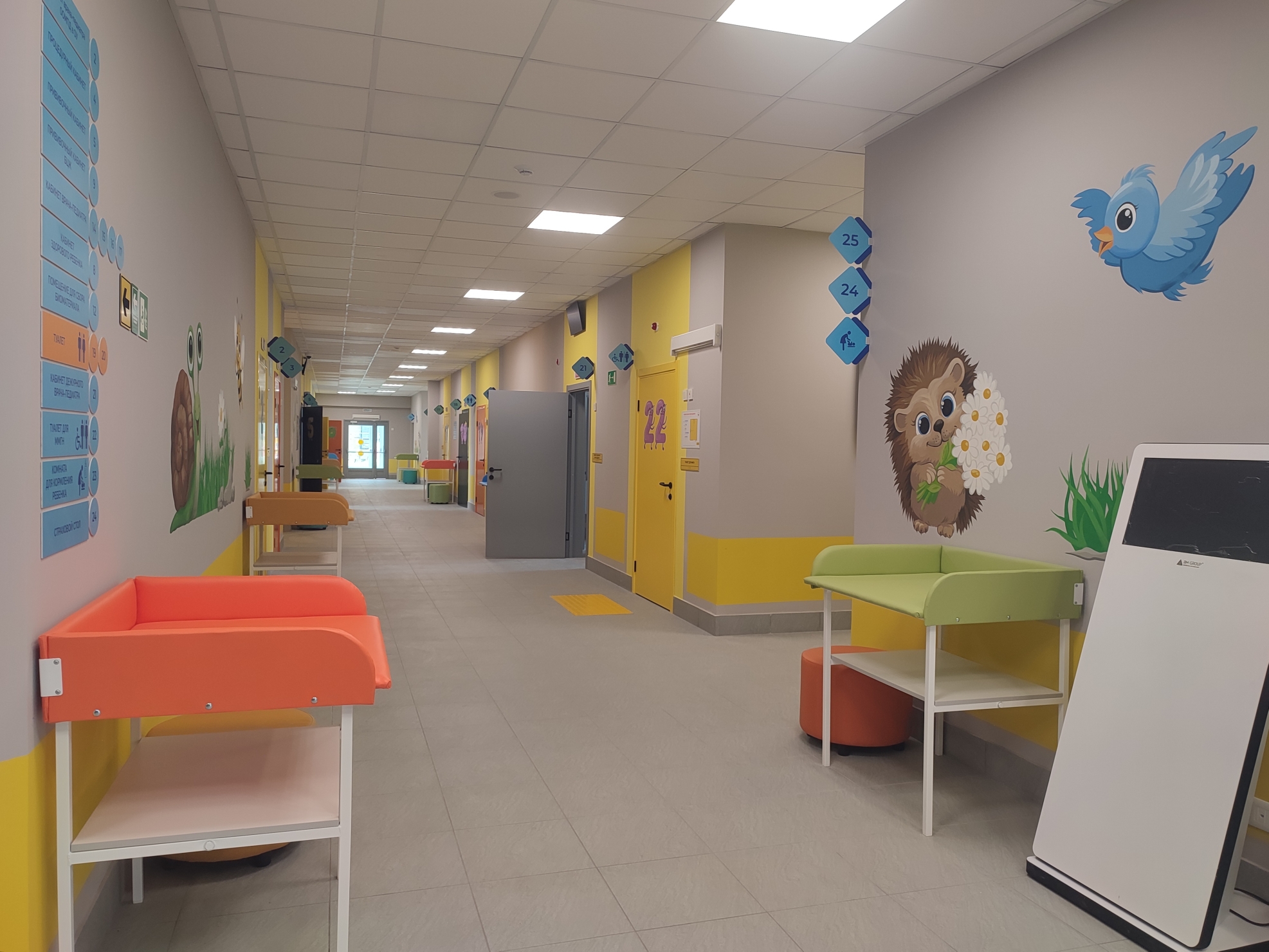 В новой поликлинике предусмотрен приём врачей-педиатров, детских специалистов: ЛОР, офтальмолога, уролога, травматолога-ортопеда. В здании имеются массажные и прививочный кабинеты, процедурная комната, кабинеты аппаратной диагностики. Оборудованы зоны комфортного ожидания приёма и отдельные входы для пациентов с признаками ОРВИ.